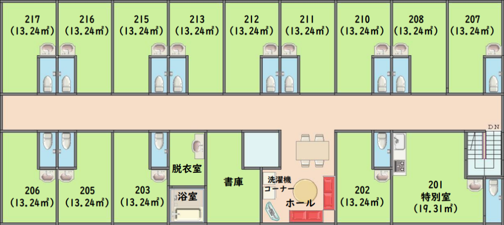 完全個室 一般居室13.24㎡・特別室20.97㎡